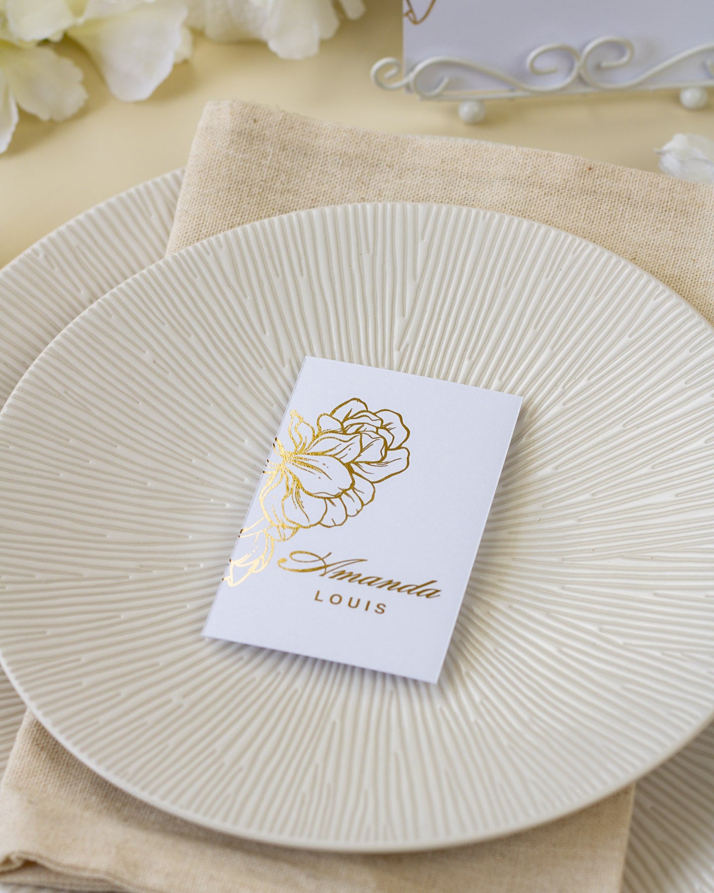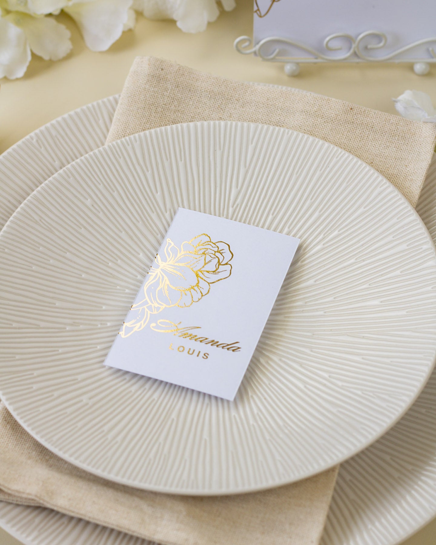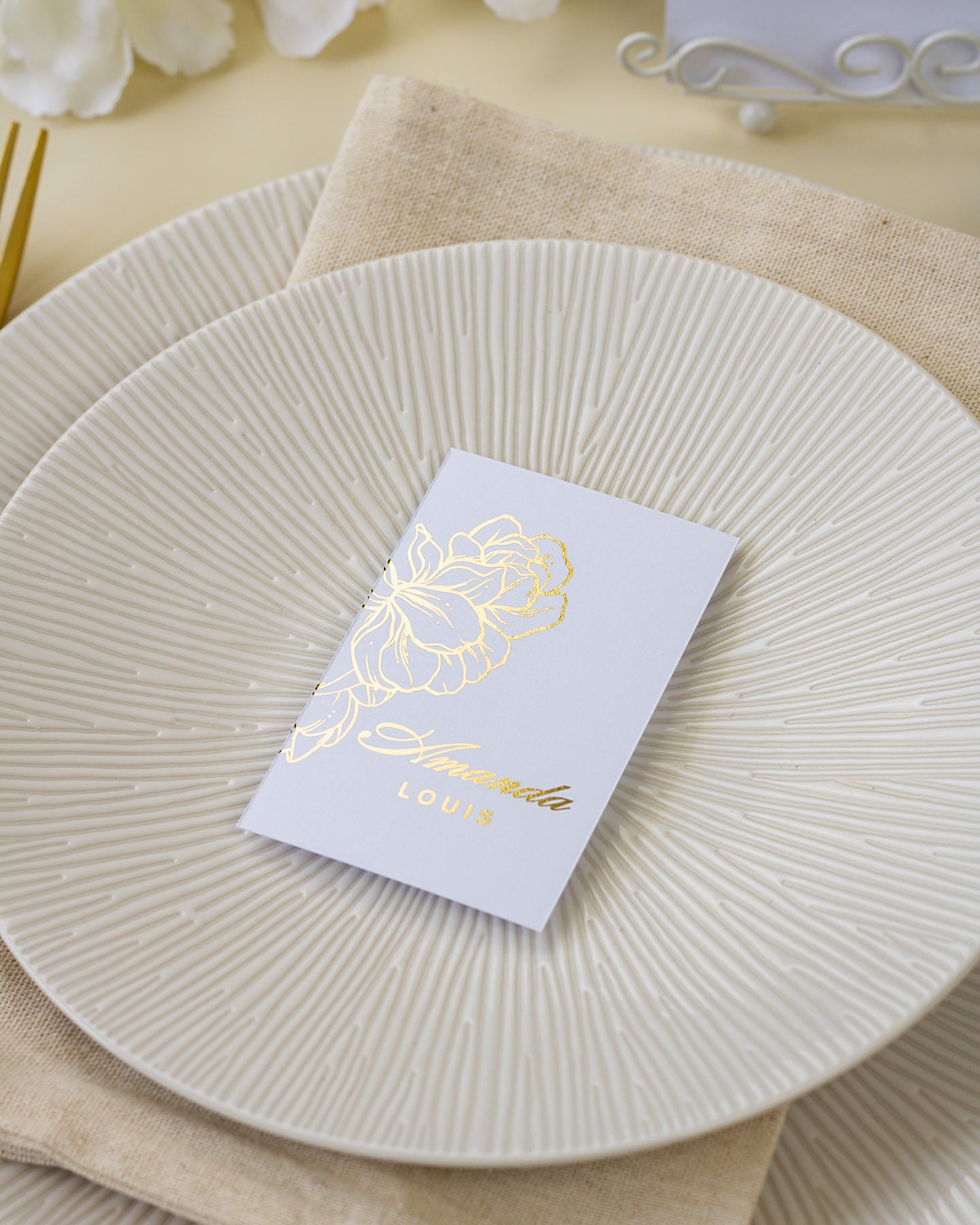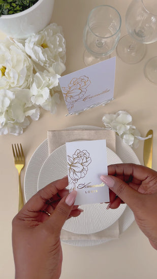 Accompagnés du nom de table et du menu, l'ensemble donne la touche finale à votre décoration !