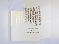 Ce Faire-part de mariage, sobre et romantique, est sublimé par la finition dorure des motifs floraux.
