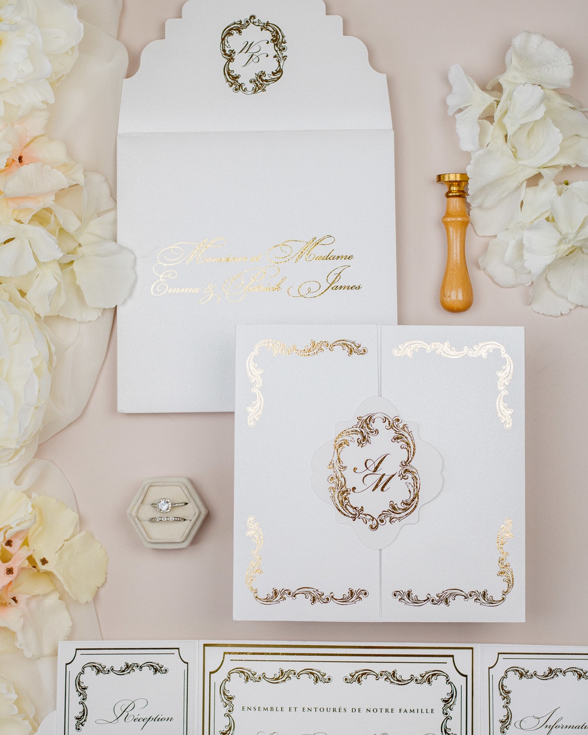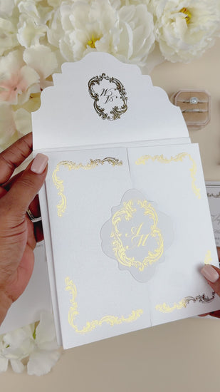 Magnifique faire-part de mariage chic et luxueux, sublimé par la finition dorure.