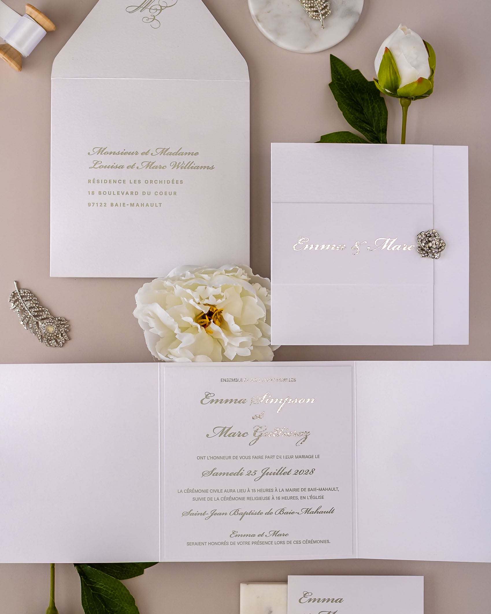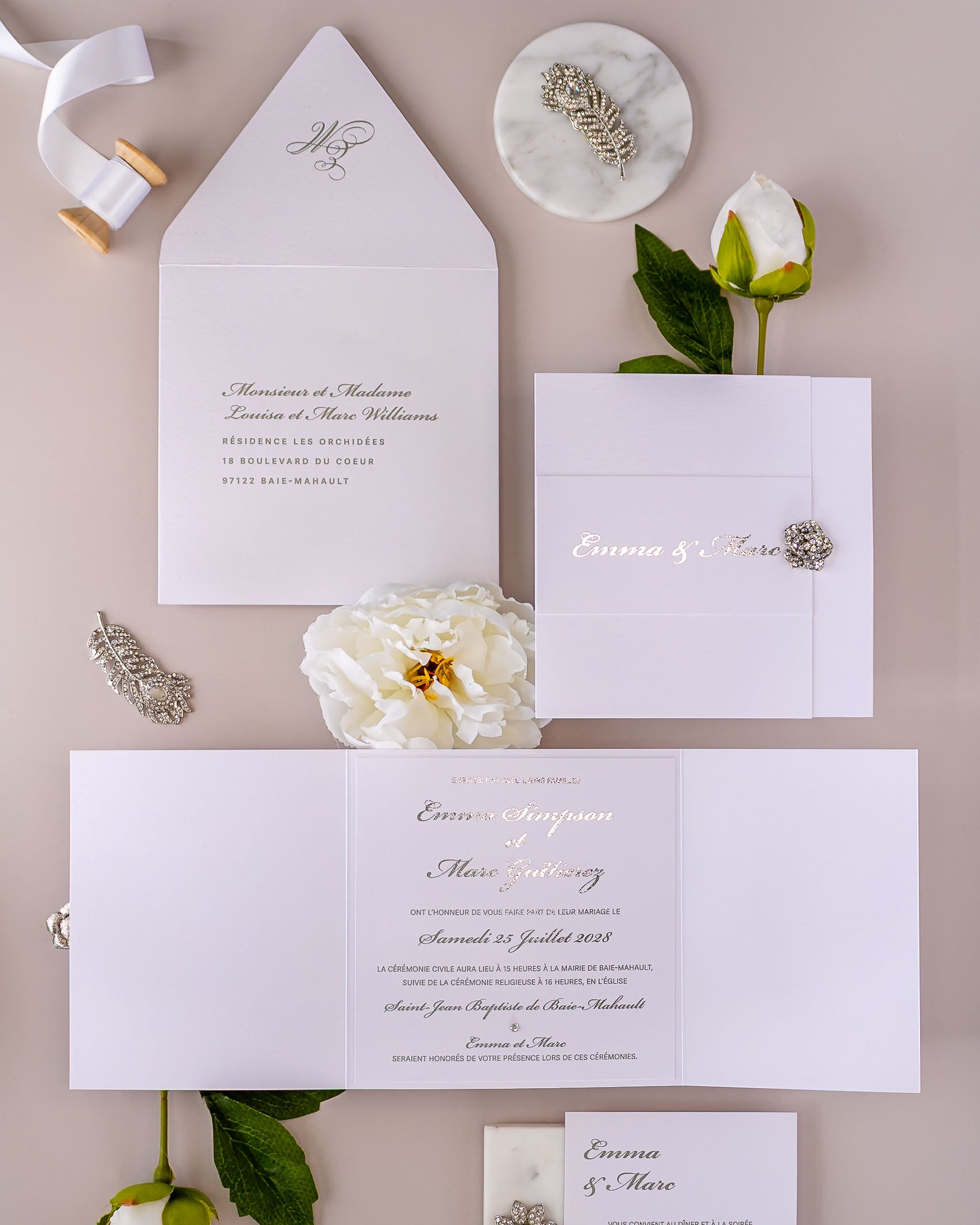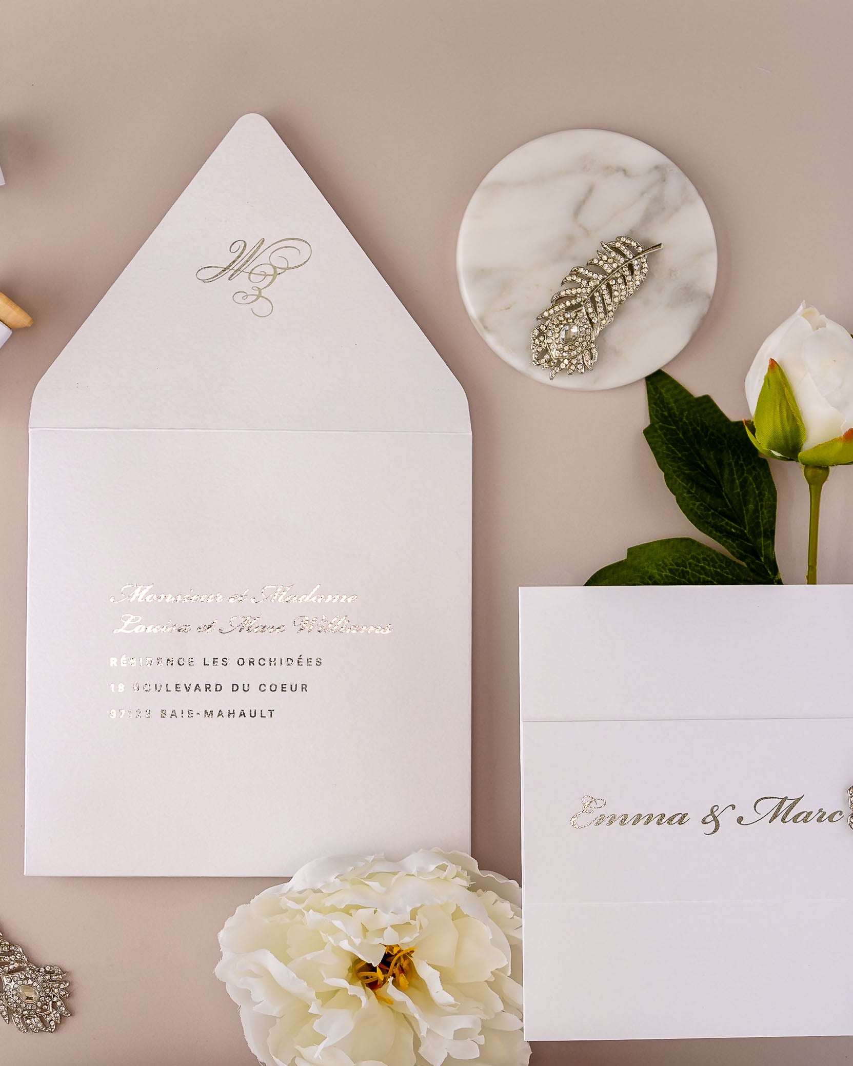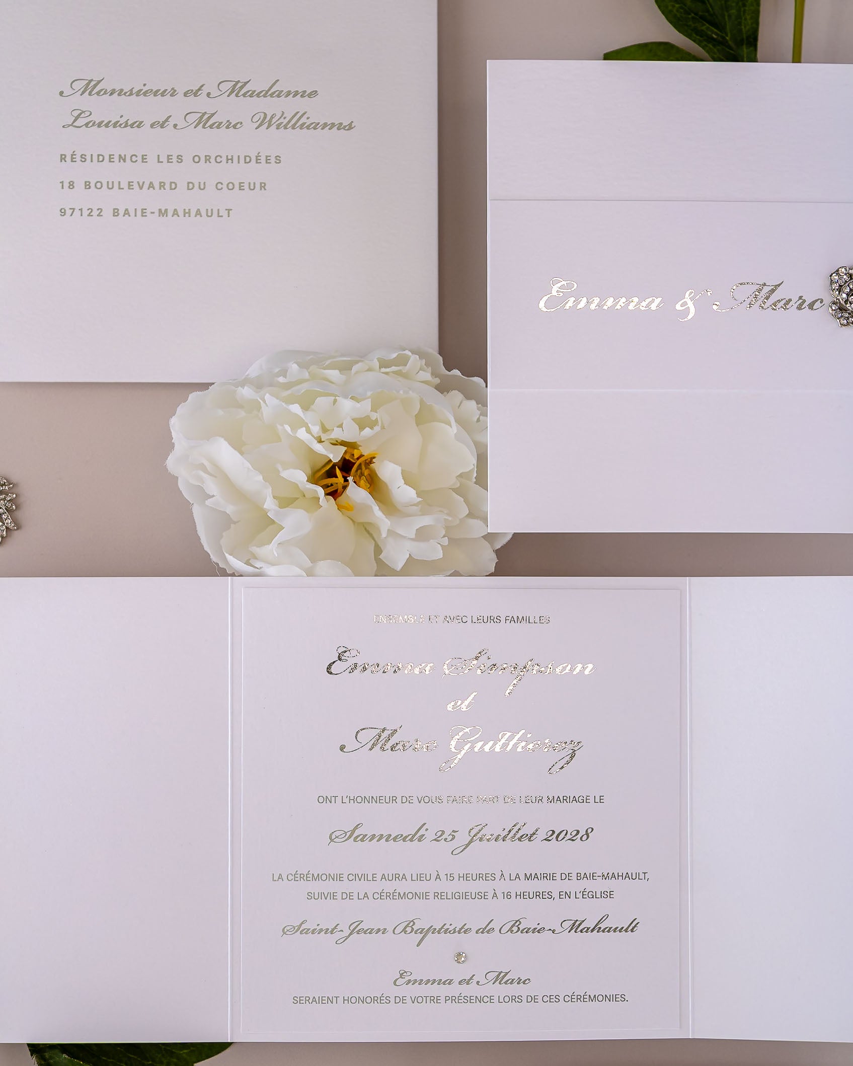 Nos faire-part de mariage chics et élégants, sont entièrement faits à la main avec amour et soin. Laissez-nous éblouir vos invités et créer des faire-part exceptionnels pour votre grand jour !