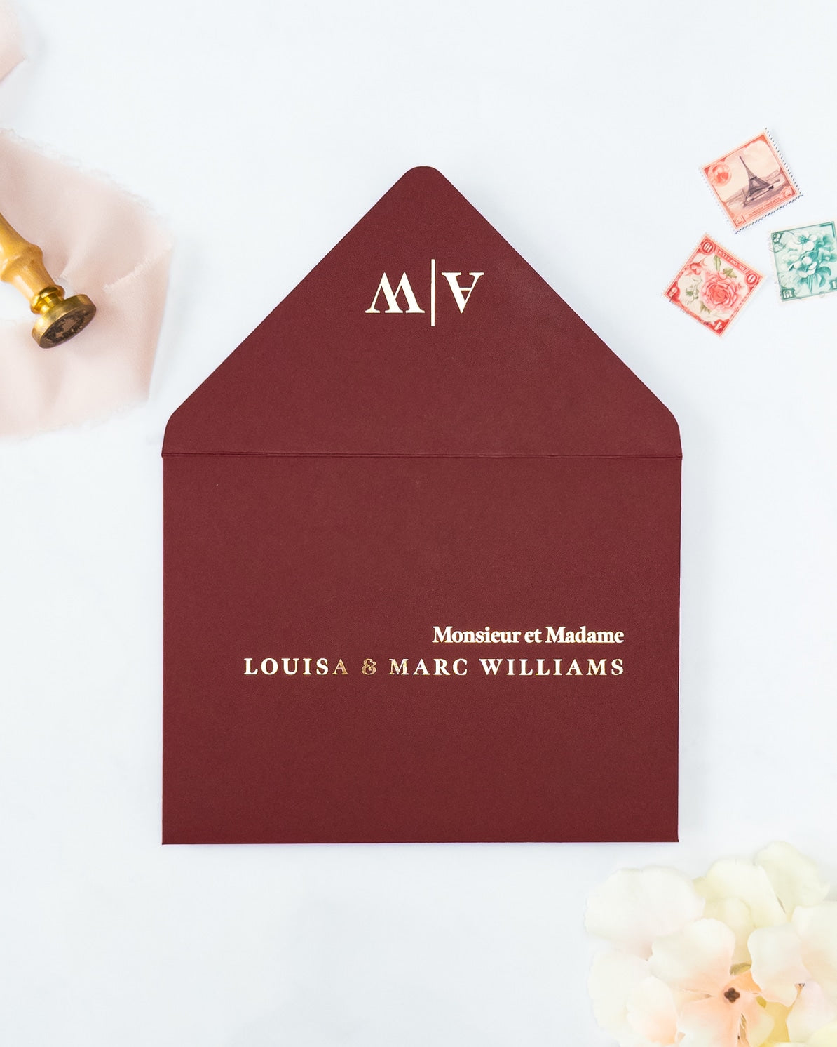 Nos enveloppes chics et élégantes, sont entièrement faites à la main avec amour et soin. Laissez-nous éblouir vos invités pour votre grand jour !