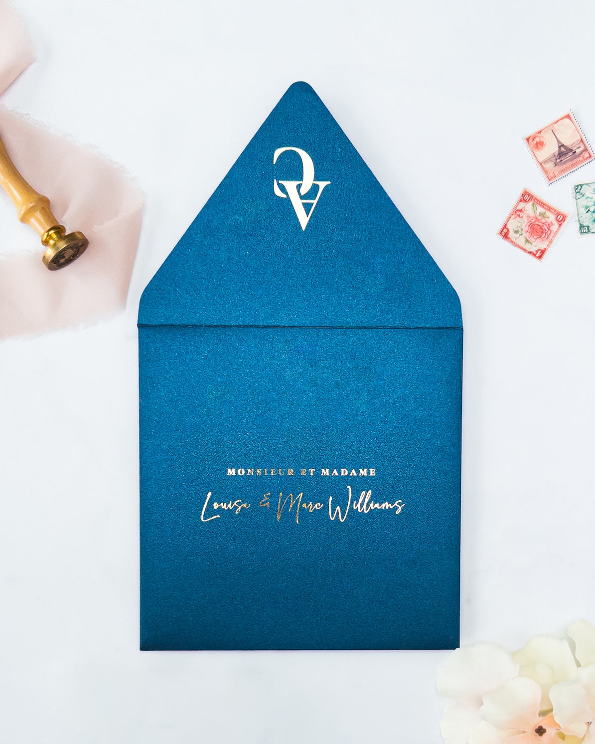Nos enveloppes chics et élégantes, sont entièrement faites à la main avec amour et soin. Laissez-nous éblouir vos invités pour votre grand jour !