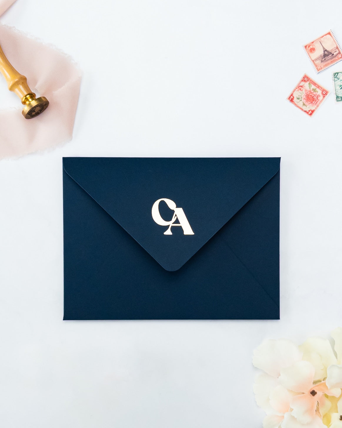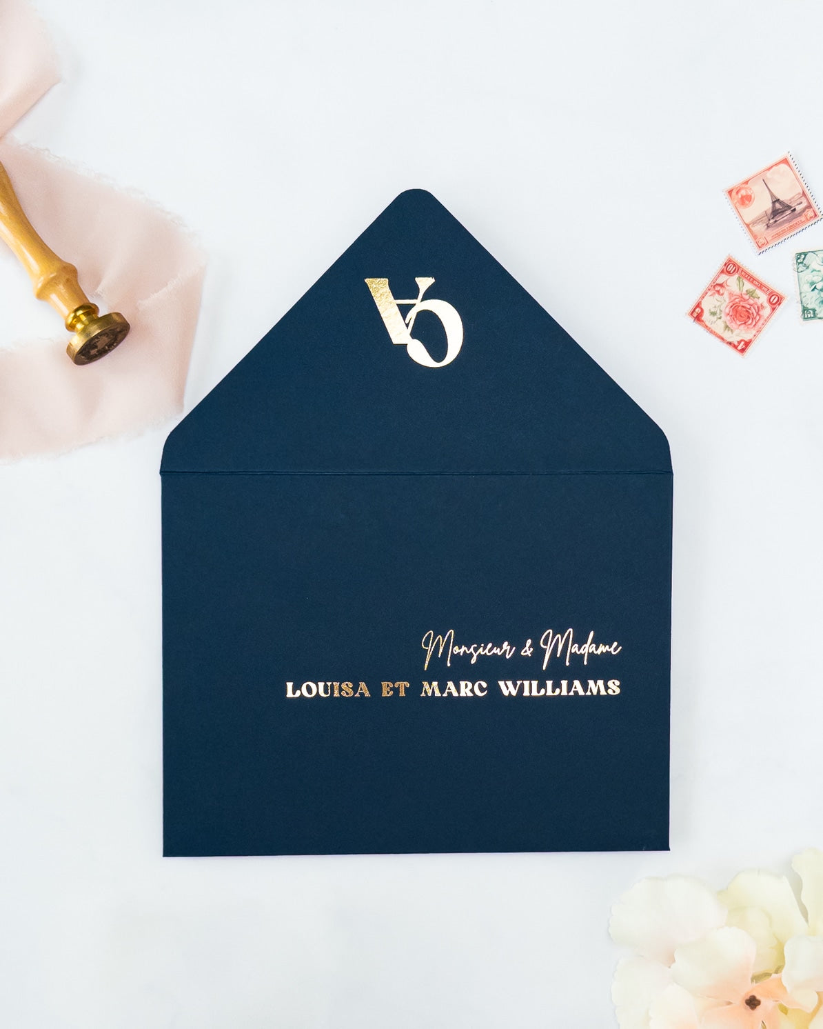 Nos enveloppes chics et élégantes, sont entièrement faites à la main avec amour et soin. Laissez-nous éblouir vos invités pour votre grand jour !