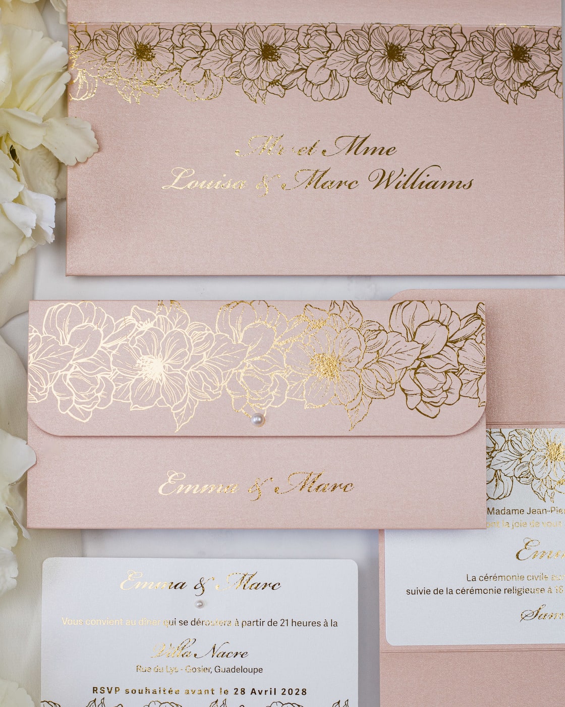 - Carton d'invitation / Inserts supplémentaires : 9 cm x 14 cm