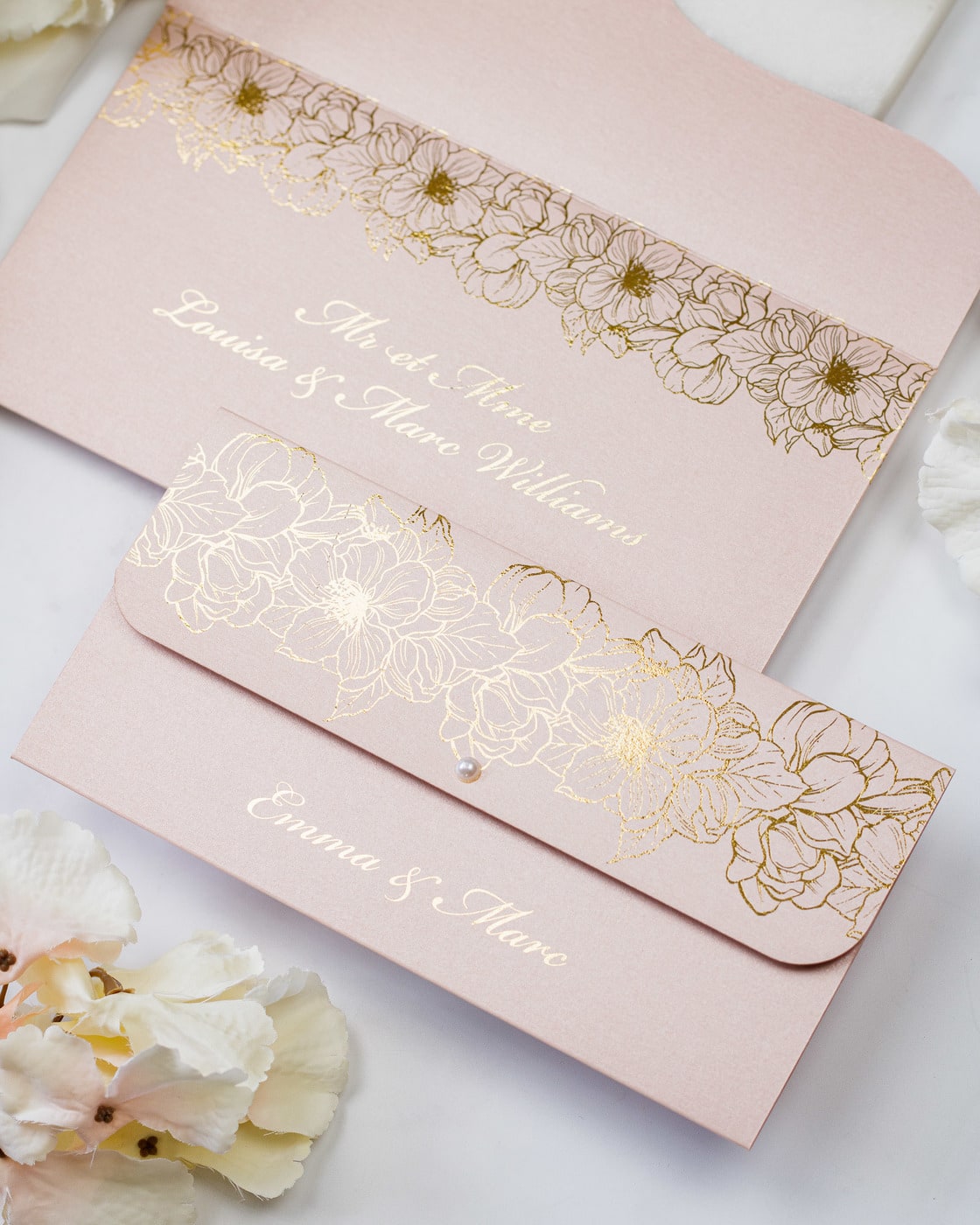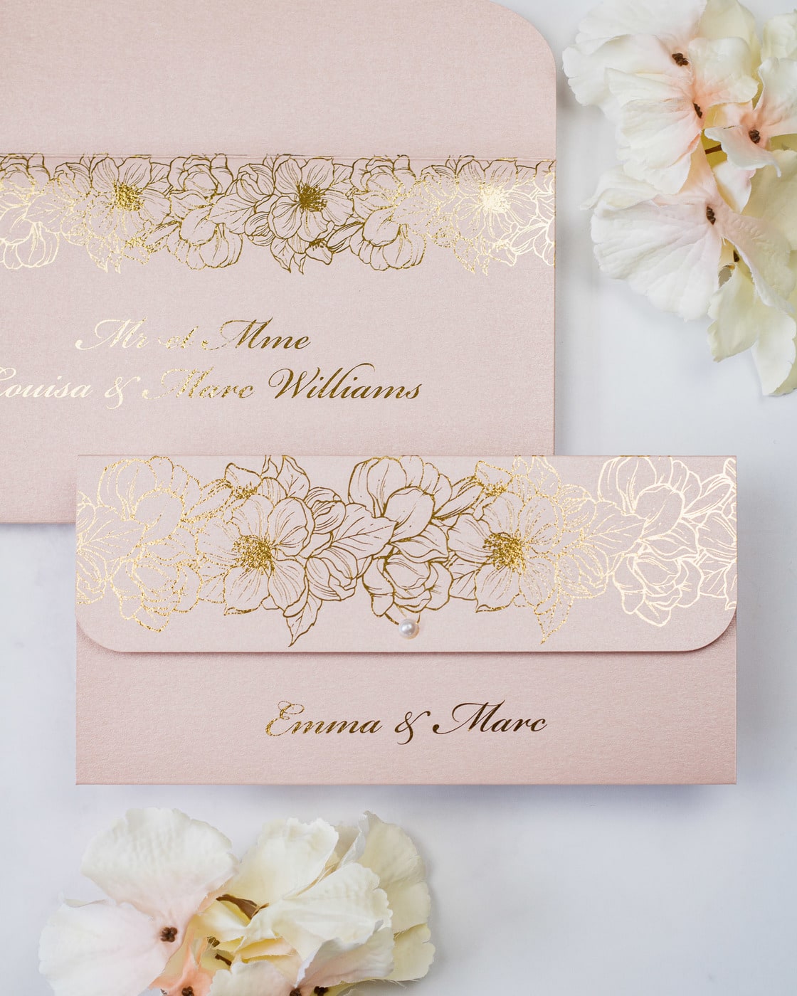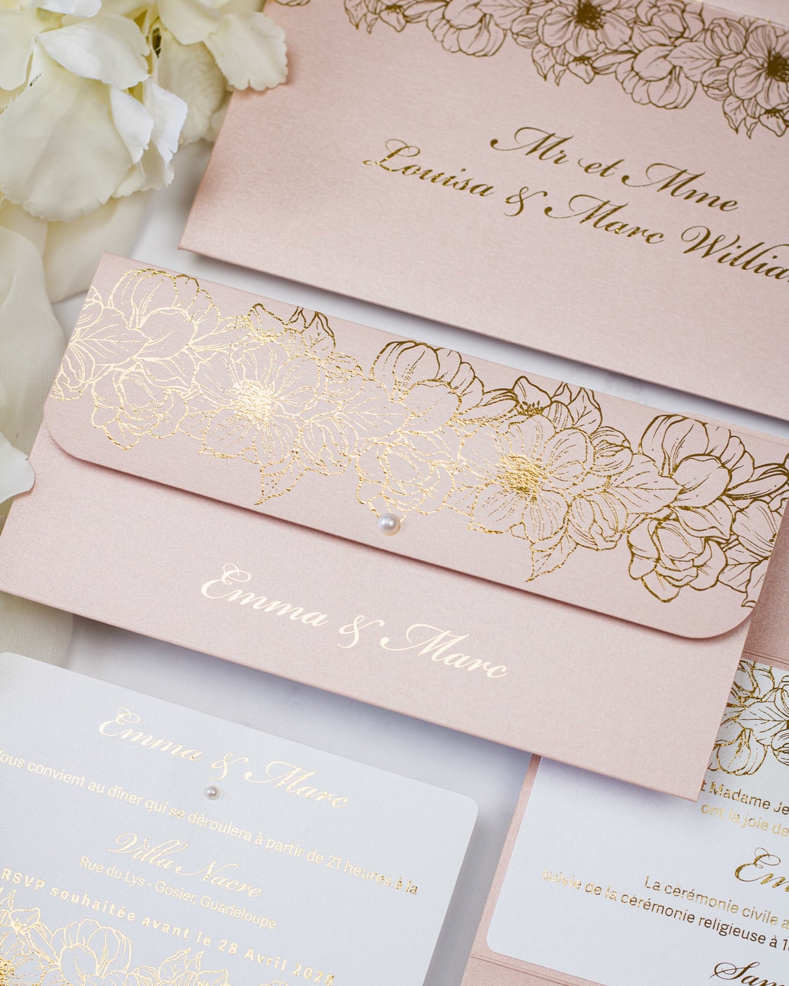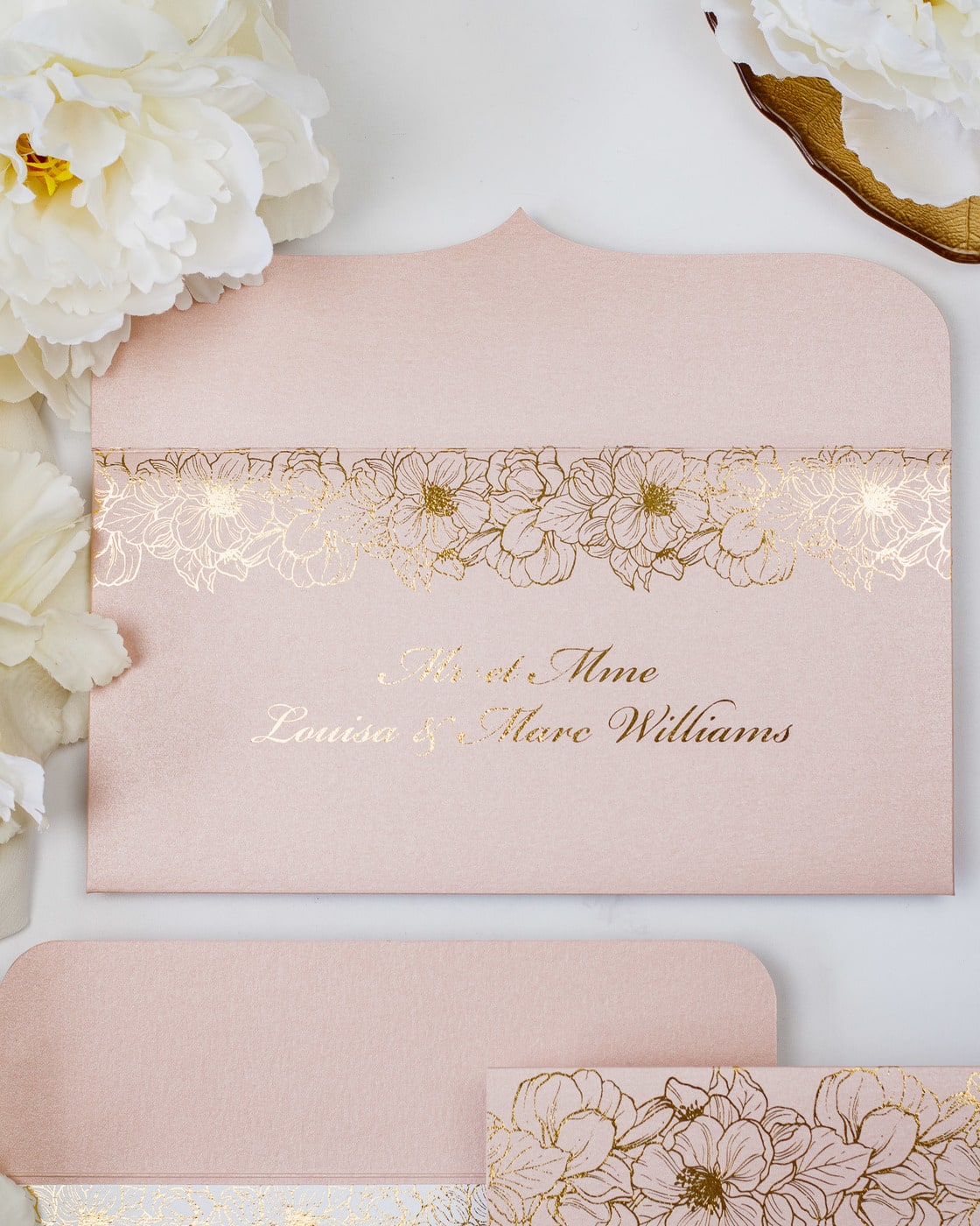 - Enveloppe : Blanc reflets or