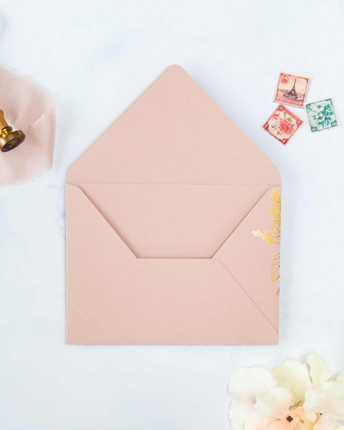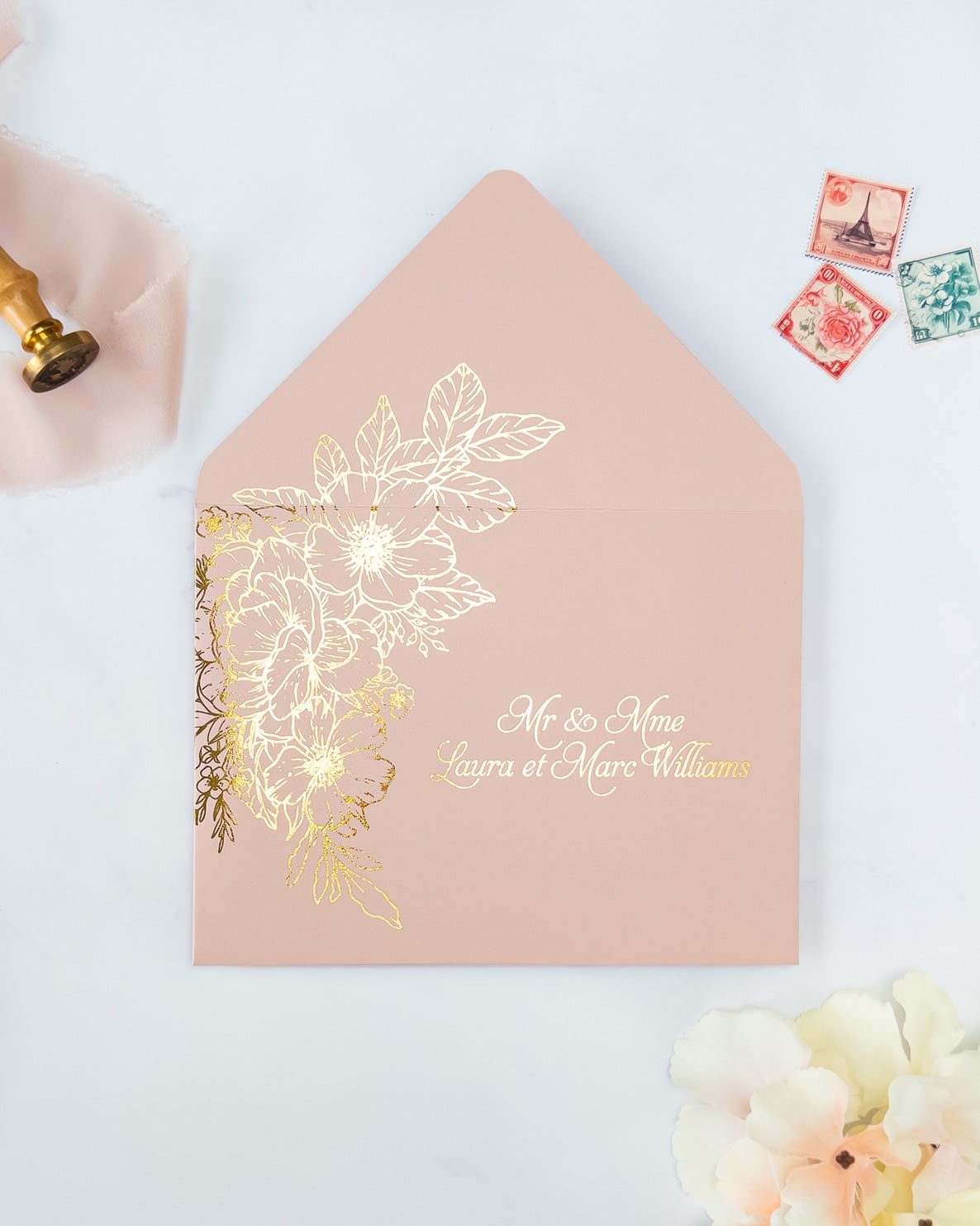 Nos enveloppes chics et élégantes, sont entièrement faites à la main avec amour et soin. Laissez-nous éblouir vos invités pour votre grand jour !
