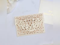 Faire-part de mariage avec une découpe laser au design simple et élégant.