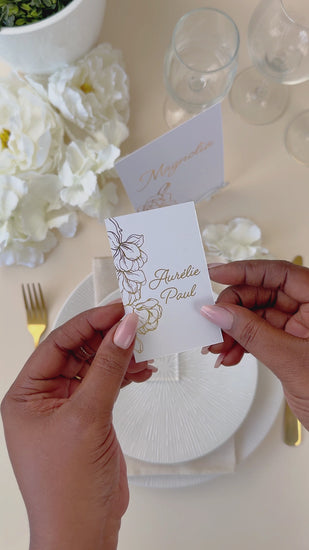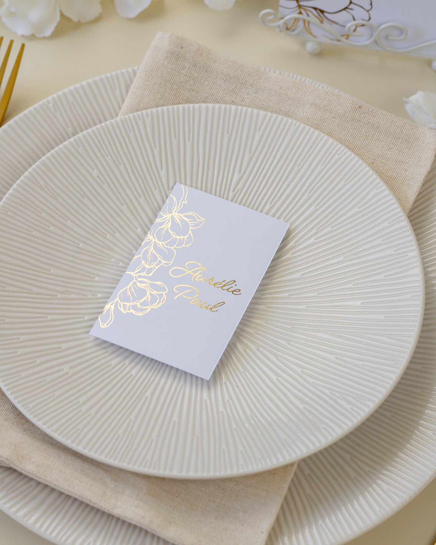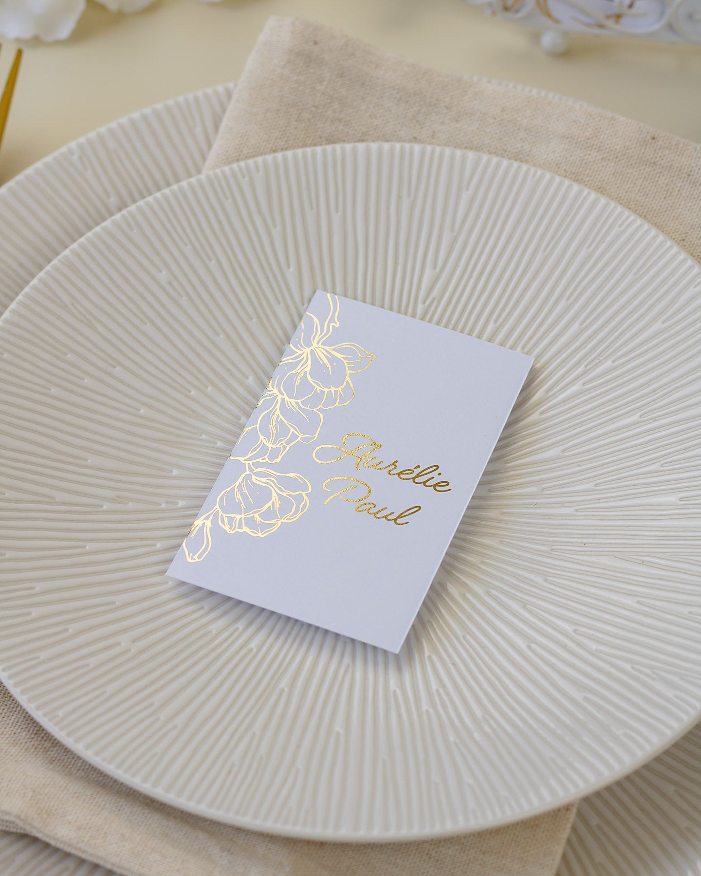 Accompagnés du nom de table et du menu, l'ensemble donne la touche finale à votre décoration !
