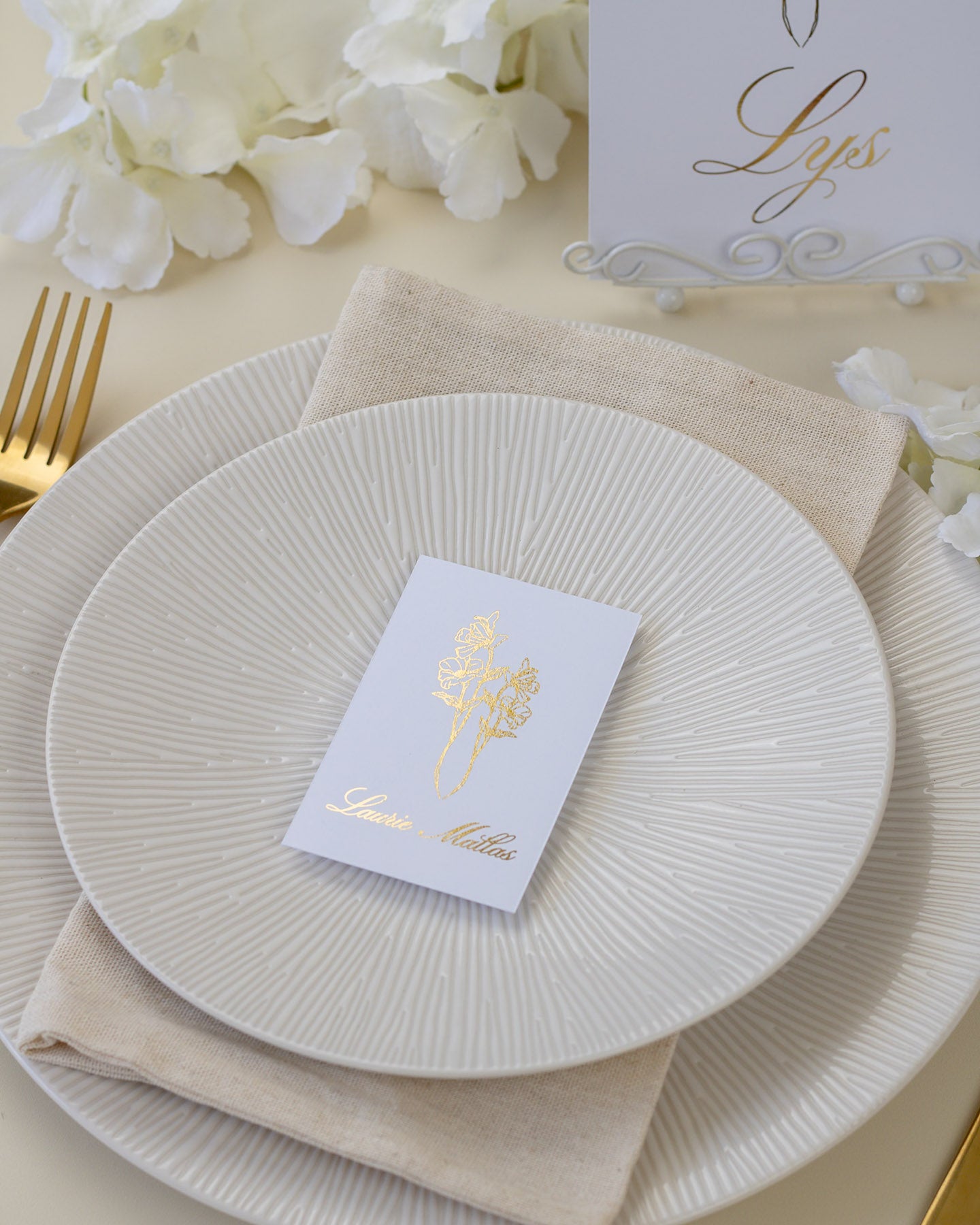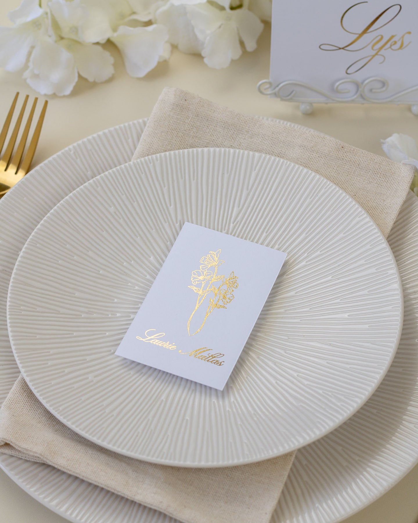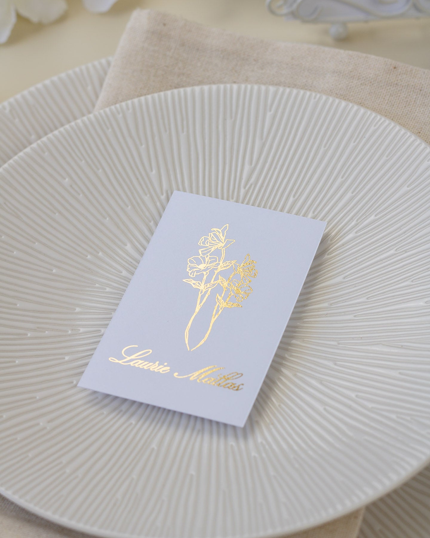 Accompagnés du nom de table et du menu, l'ensemble donne la touche finale à votre décoration !