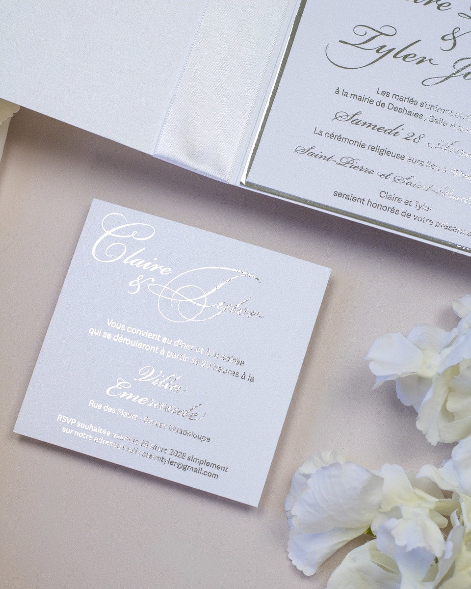 - Carton d'invitation / Inserts supplémentaires : 11,5 cm x 11,5 cm