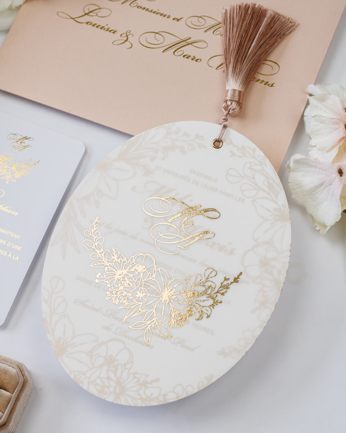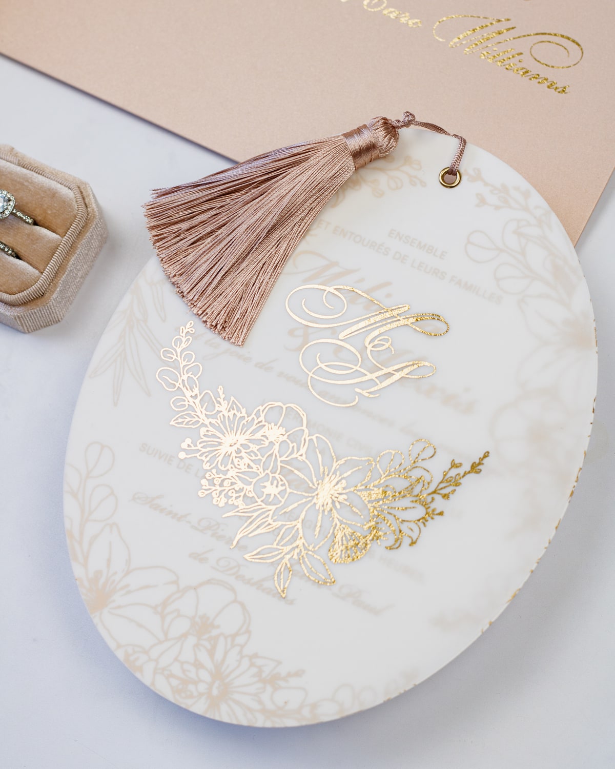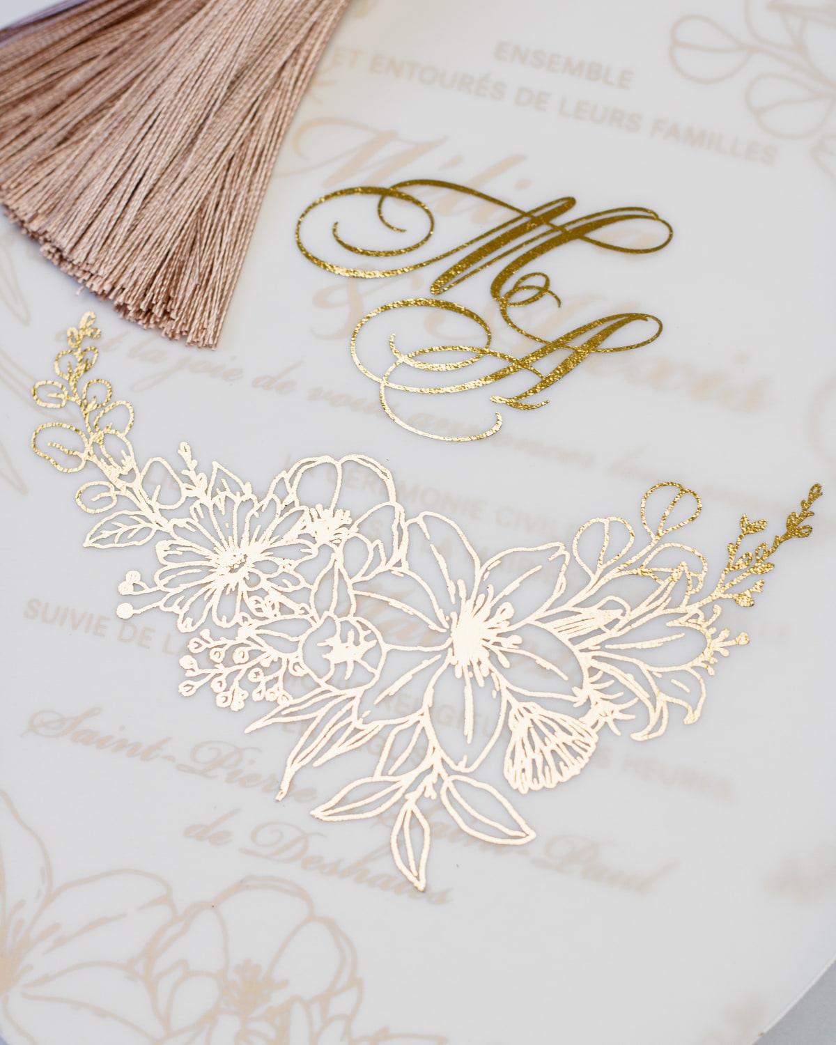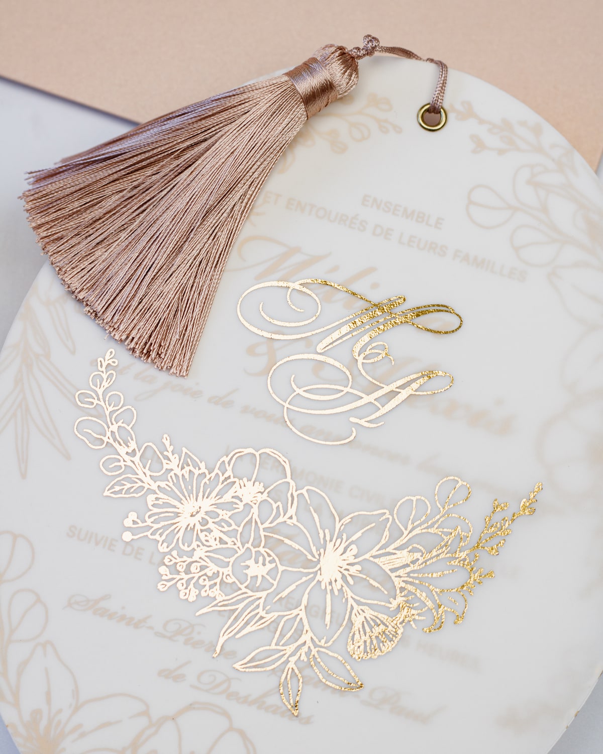 Elégant faire-part de mariage, orné d'un élégant Tassel et sublimé par une finition or, .