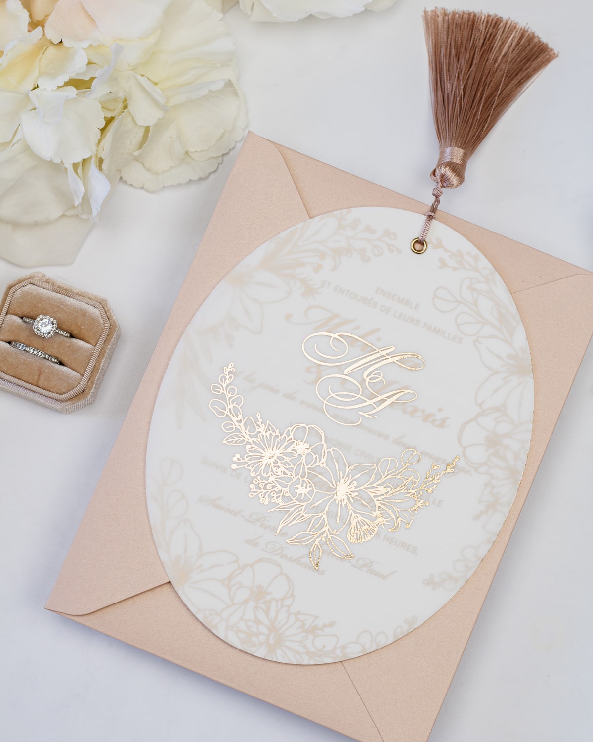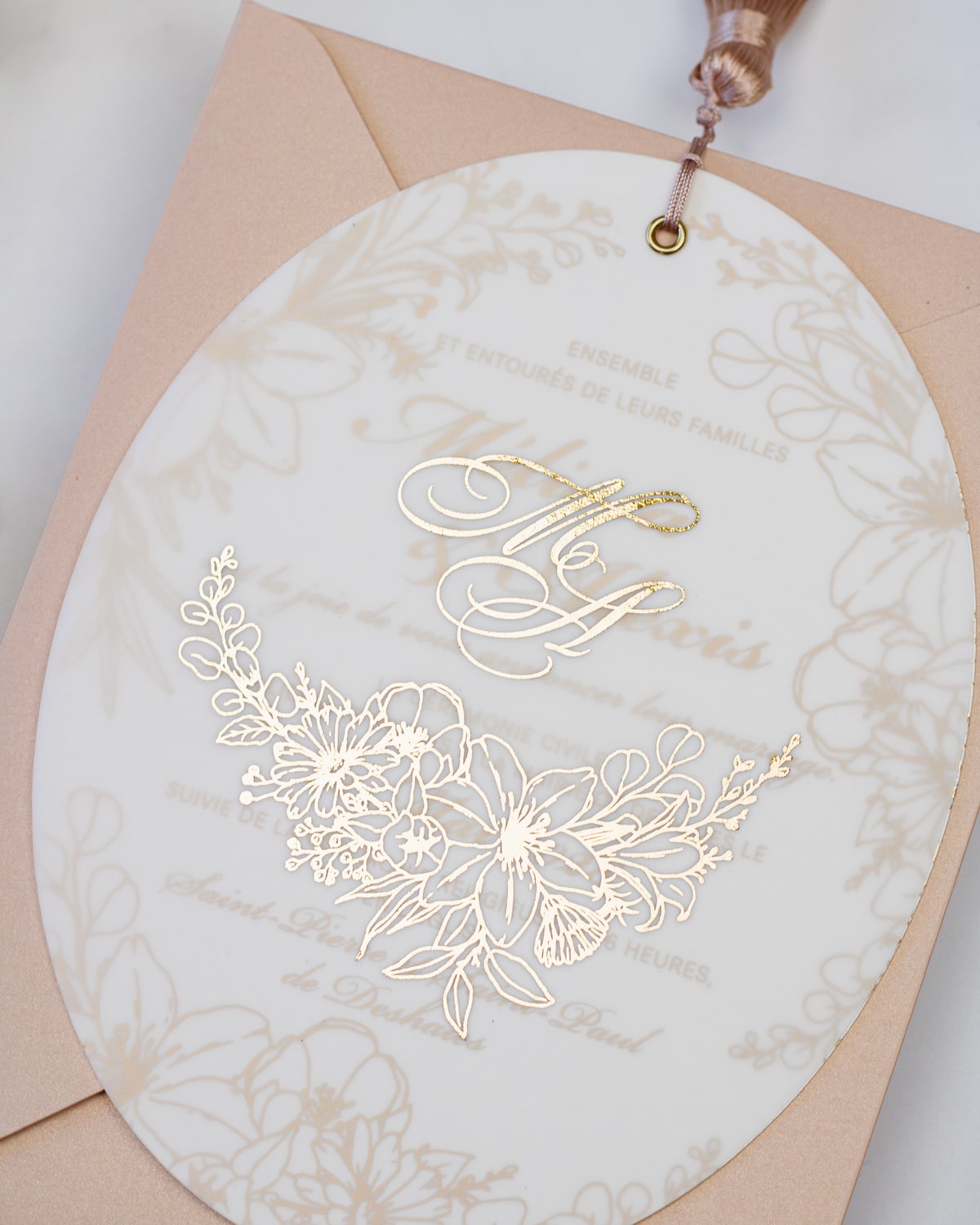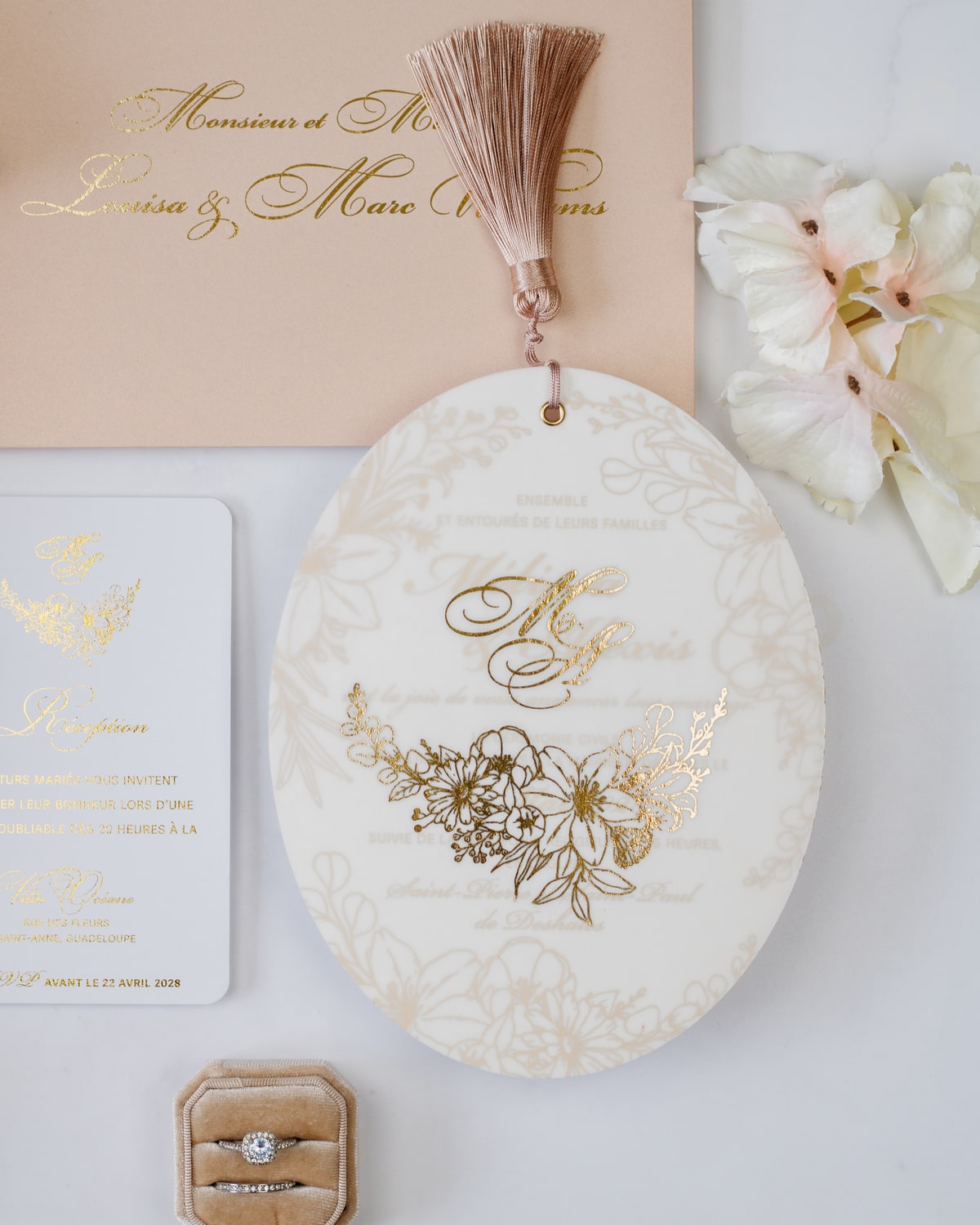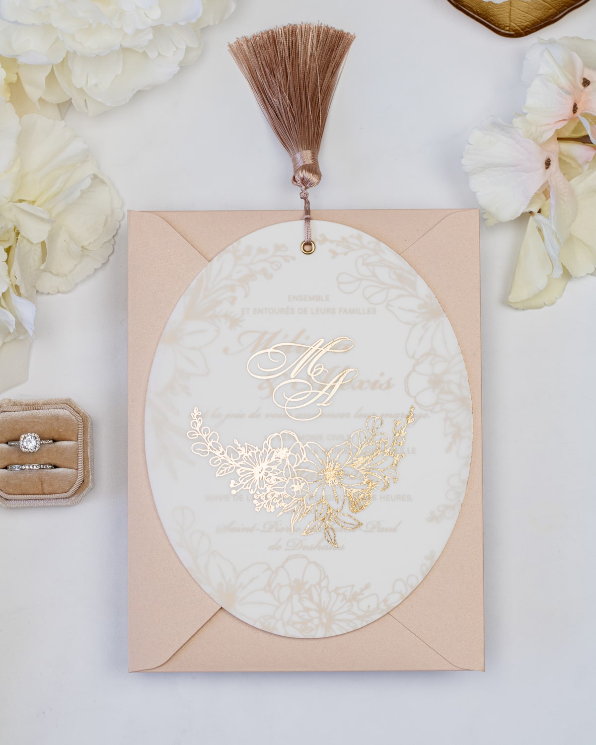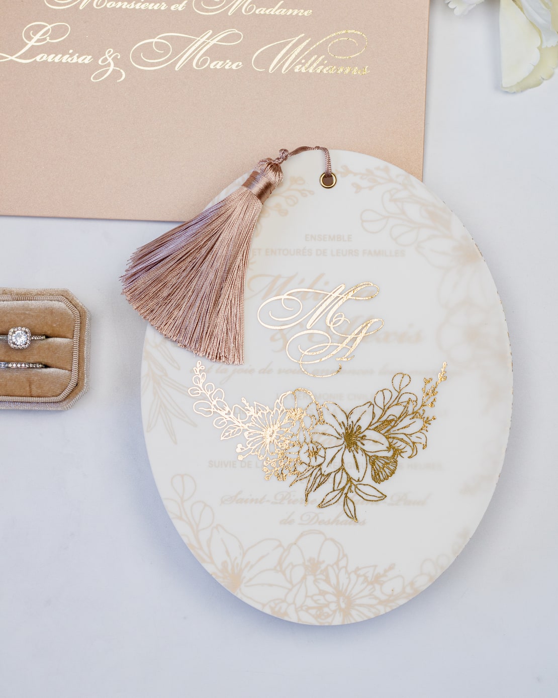Elégant faire-part de mariage, orné d'un élégant Tassel et sublimé par une finition or, .