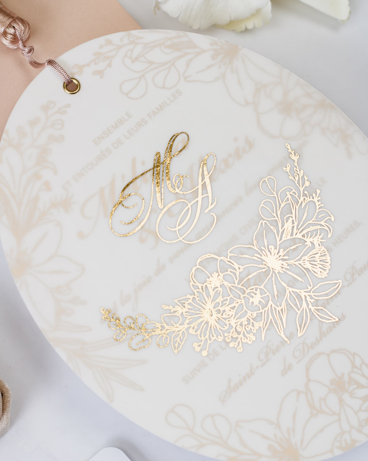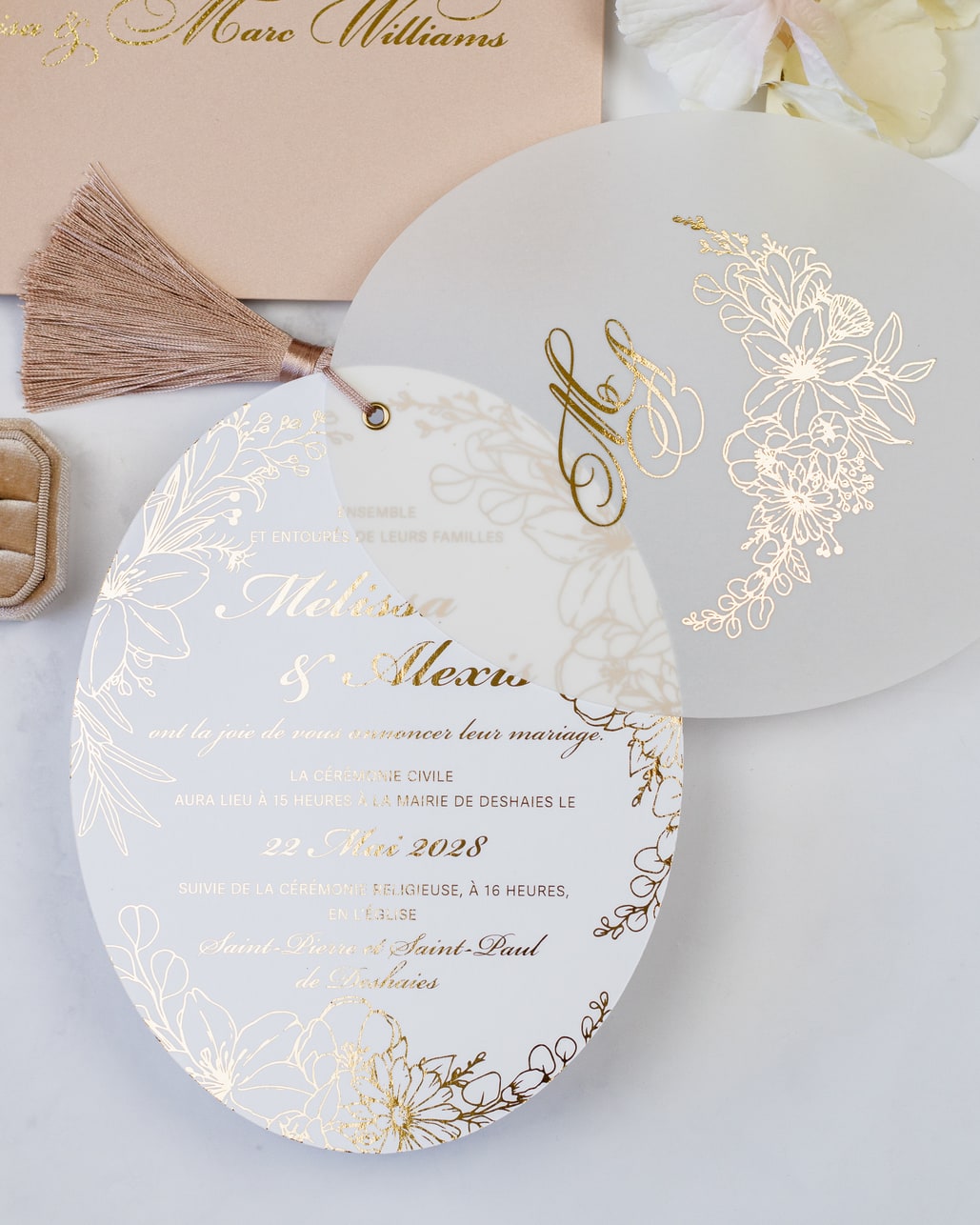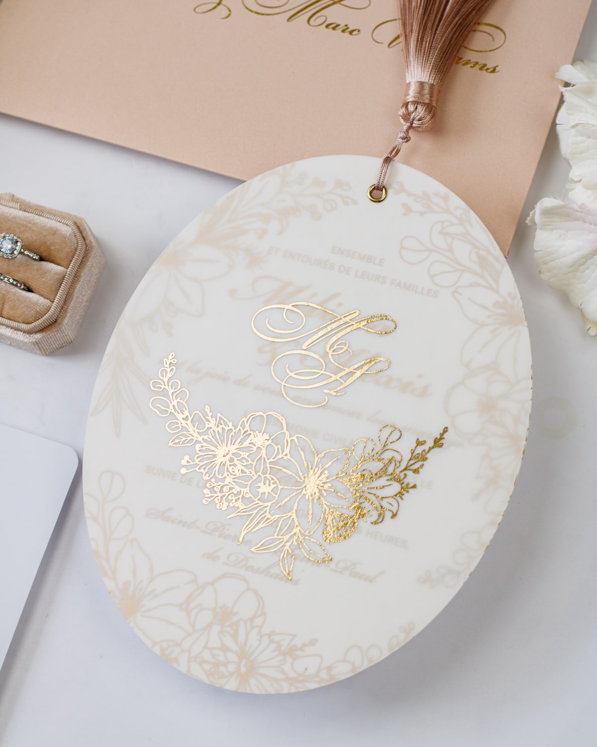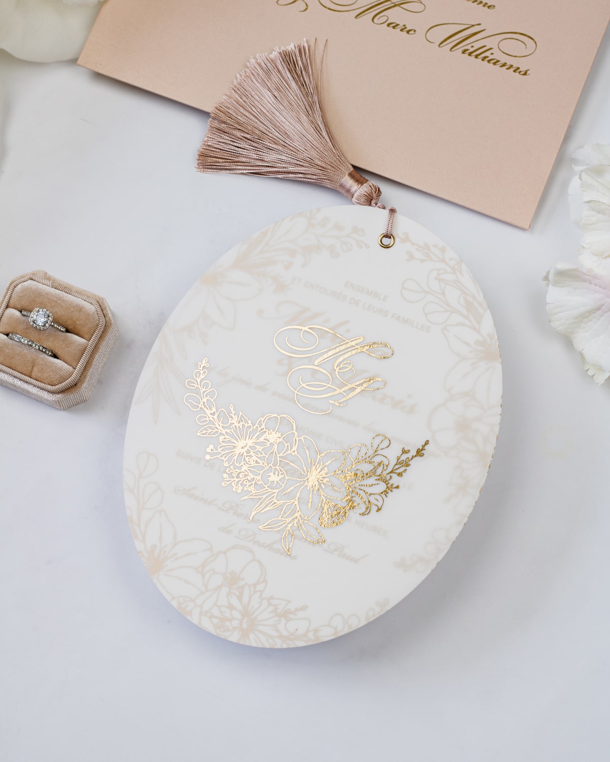 Elégant faire-part de mariage, orné d'un élégant Tassel et sublimé par une finition or, .