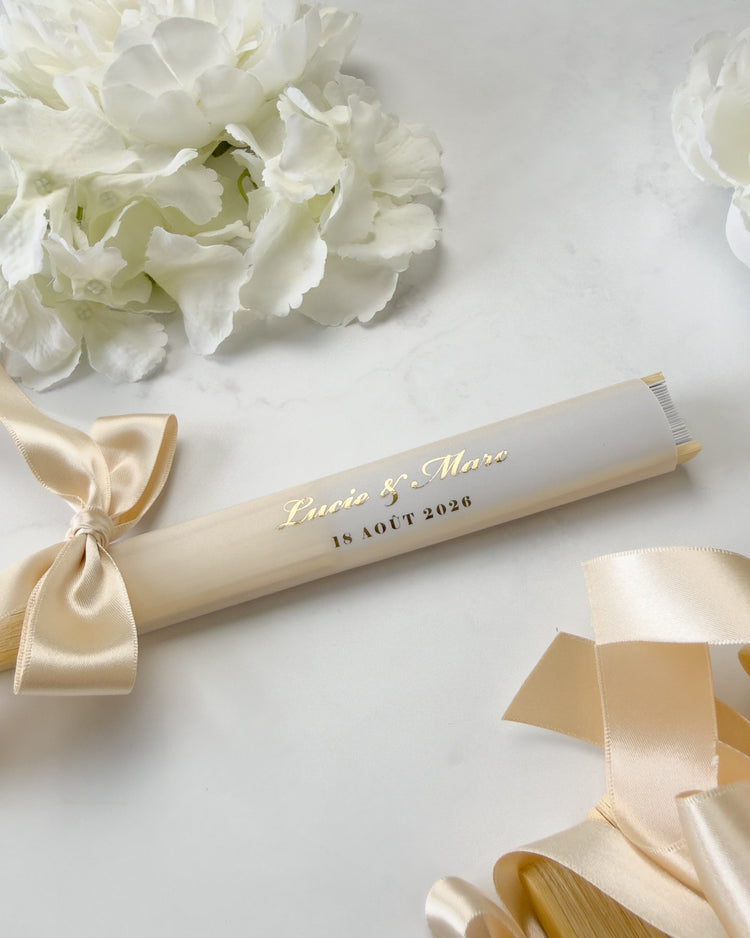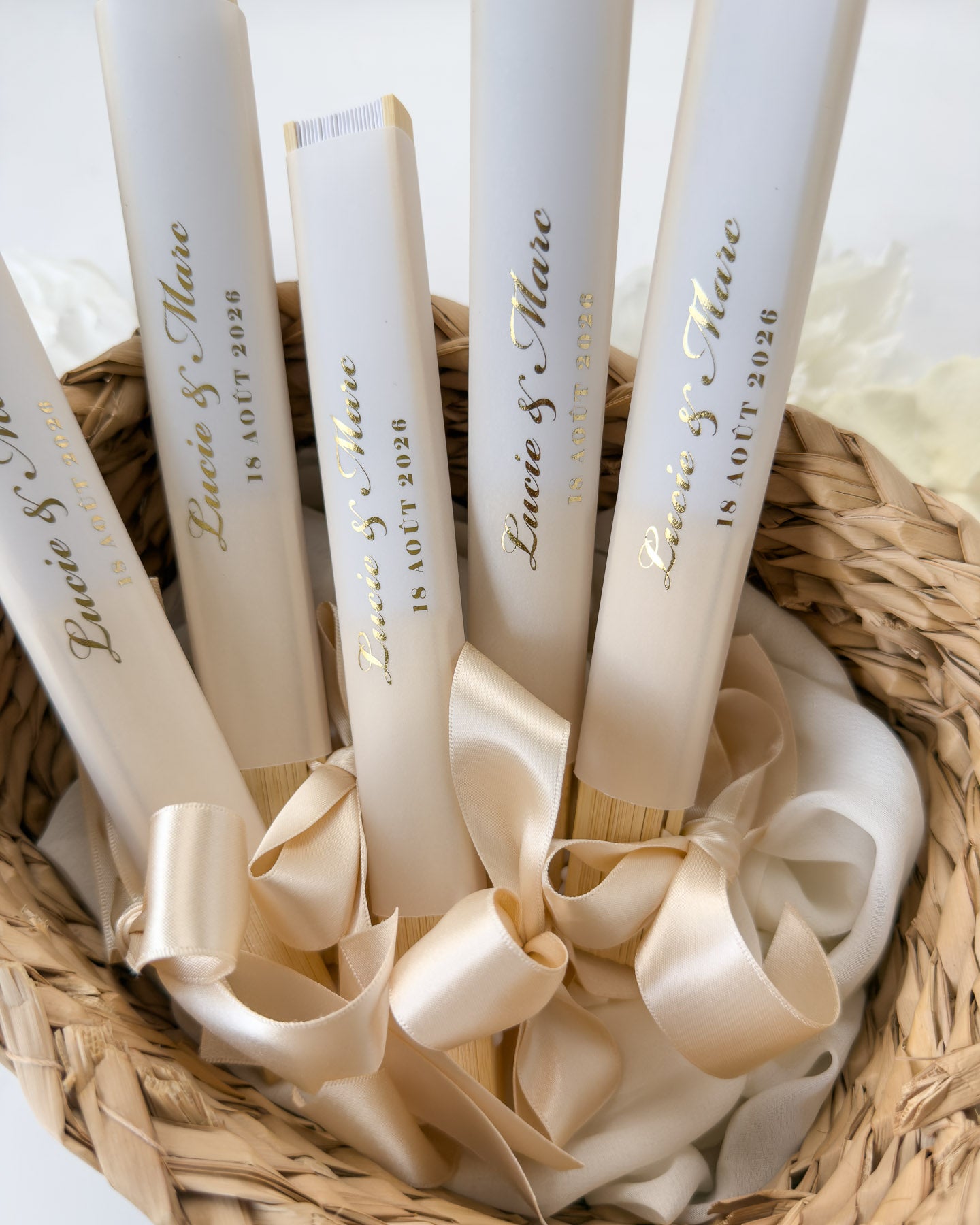 A distribuer à l’entrée de votre lieu de cérémonie, ou à placer dans un grand panier à la disposition de chacun. Ils donnent le ton de votre thème de décoration.
