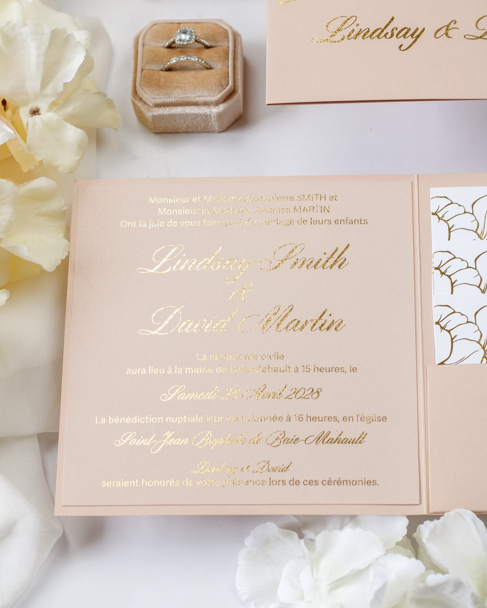Le format pochette de ce faire-part vous permettra de réunir toutes les informations nécessaires à vos invités