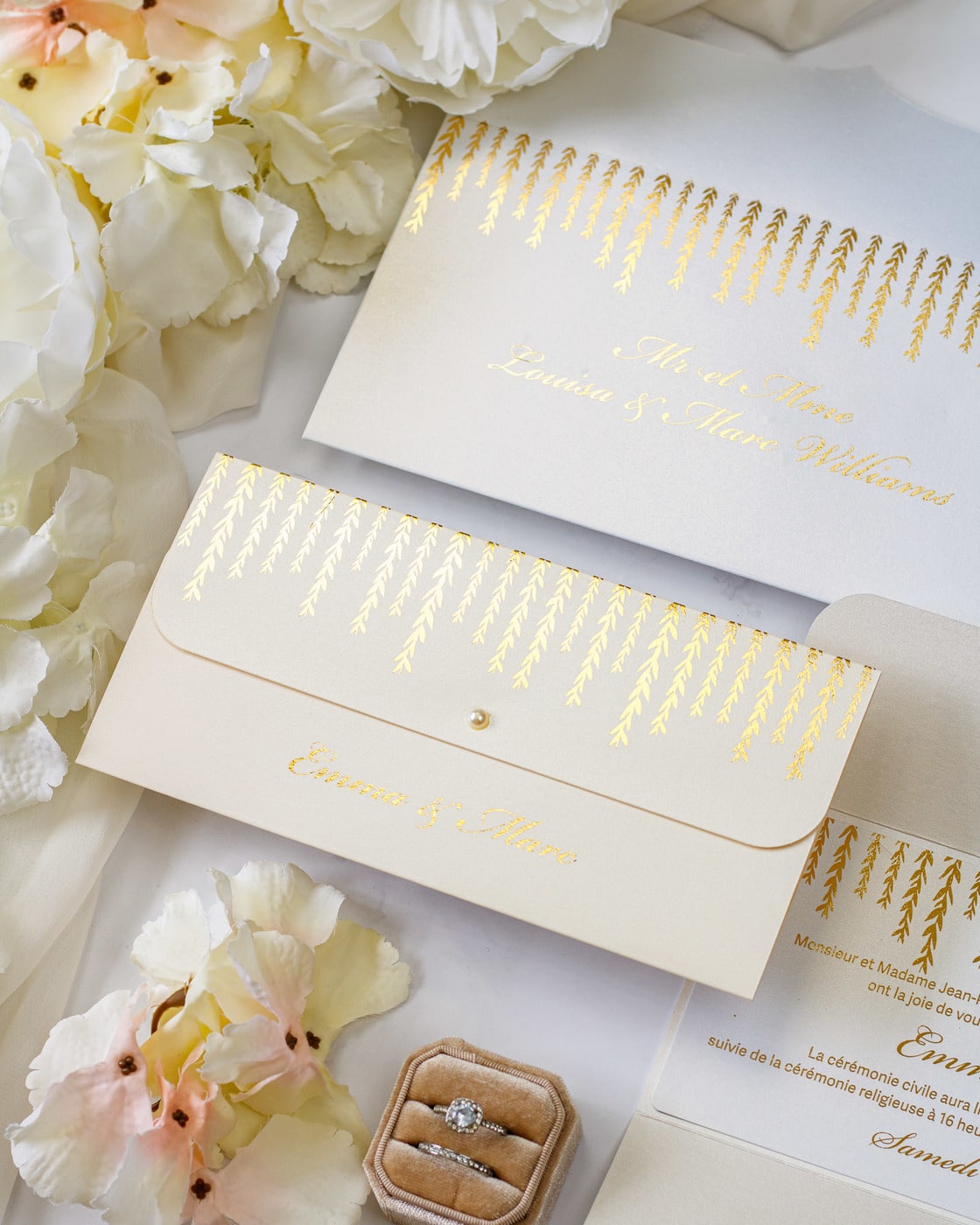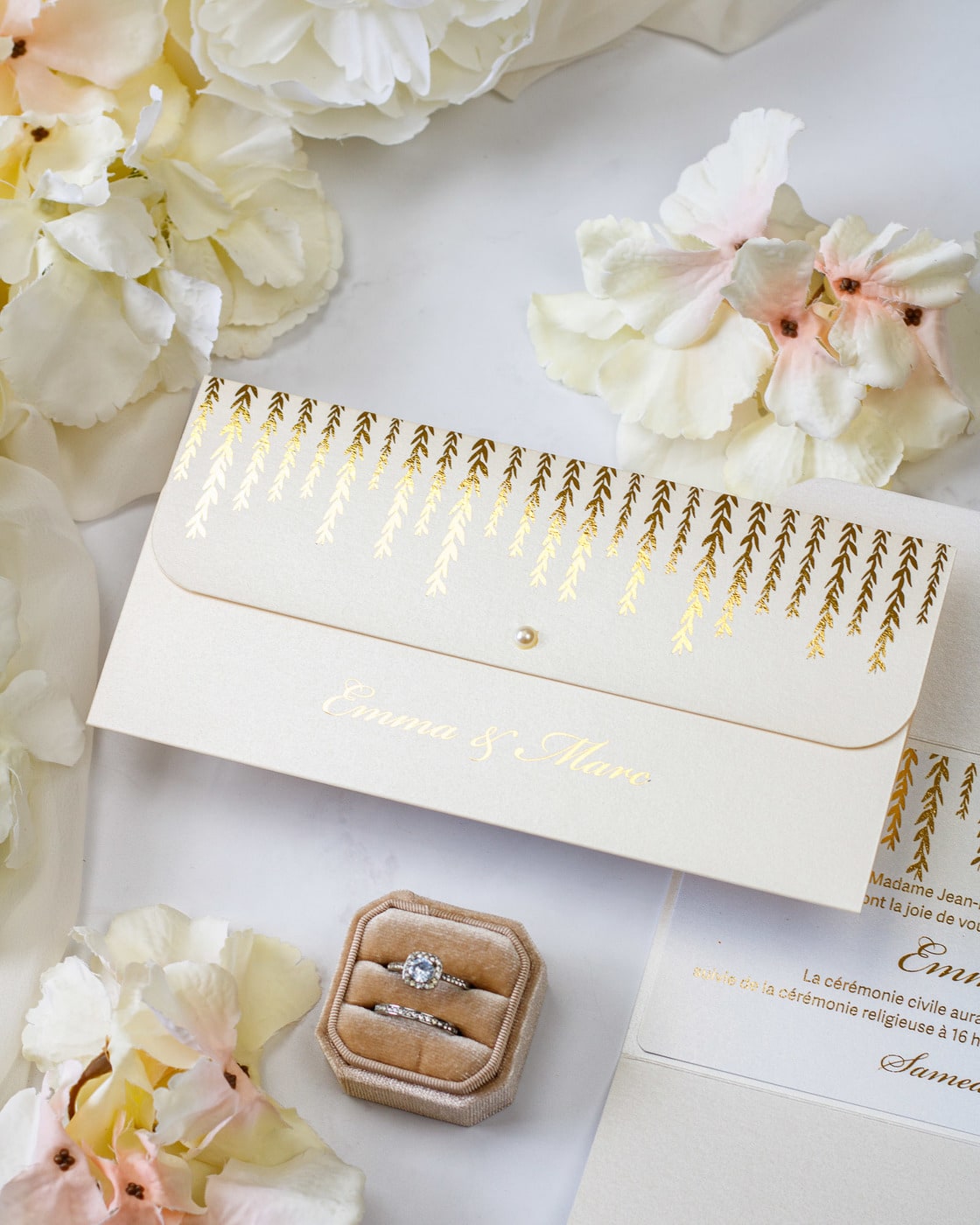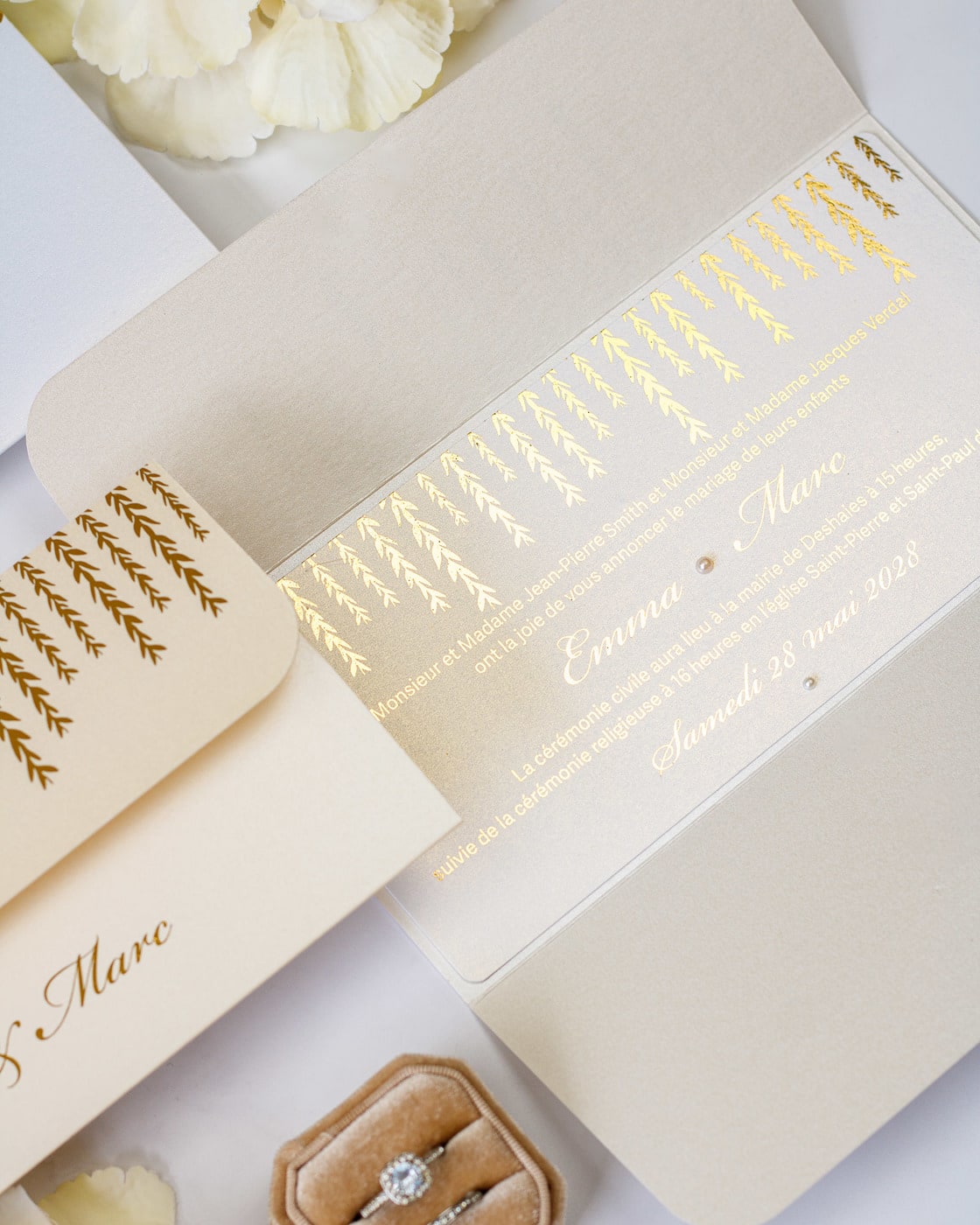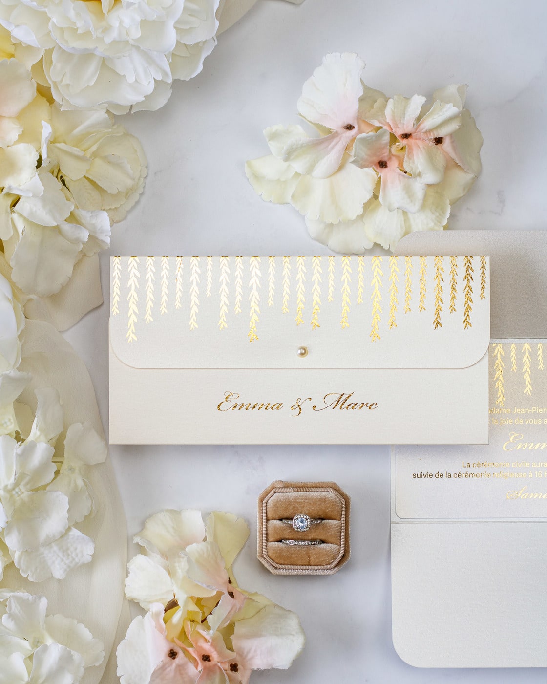 Nos faire-part de mariage chics et élégants, sont entièrement faits à la main avec amour et soin. Laissez-nous éblouir vos invités et créer des faire-part exceptionnels pour votre grand jour !