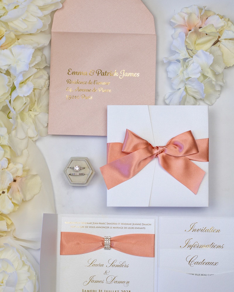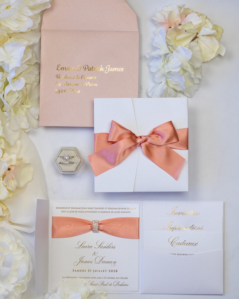 Nos faire-part de mariage chics et élégants, sont entièrement faits à la main avec amour et soin. Laissez-nous éblouir vos invités et créer des faire-part exceptionnels pour votre grand jour !